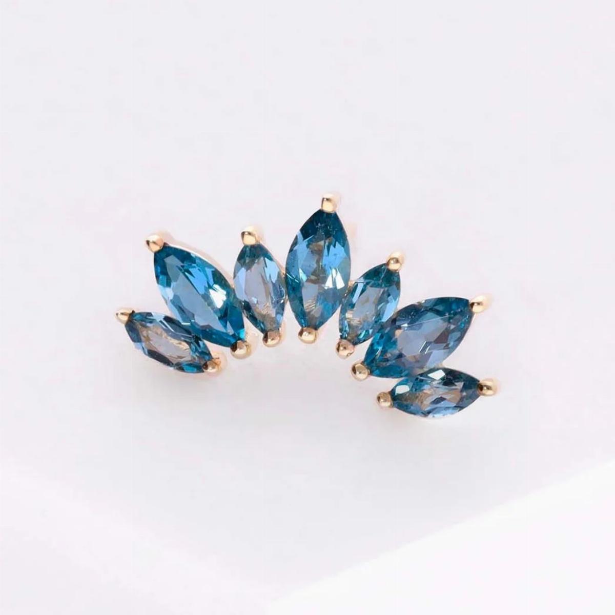 Questo esclusivo accessorio threadless, realizzato in oro giallo 14 carati con topazio London Blue, fa parte della nuova collezione Tremun Gold. Il suo design elegante, unito alla brillantezza e al colore vibrante del topazio London Blue, lo rende un’opzione ideale per aggiungere un tocco di distinzione a qualsiasi collezione di gioielli.